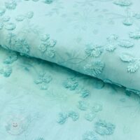 Bavlnená látka EMBROIDERY Catchy leaves aqua