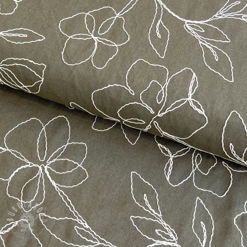 Viskóza s ľanom EMBROIDERY Flower Danielle pickle